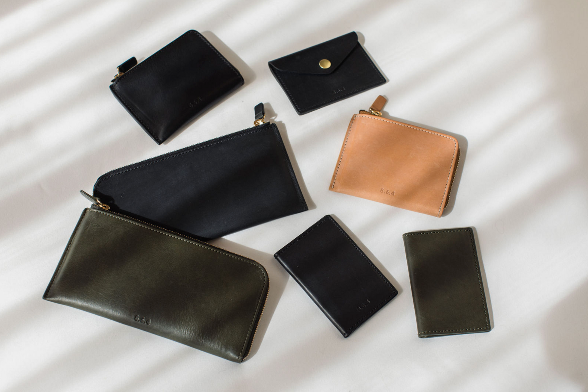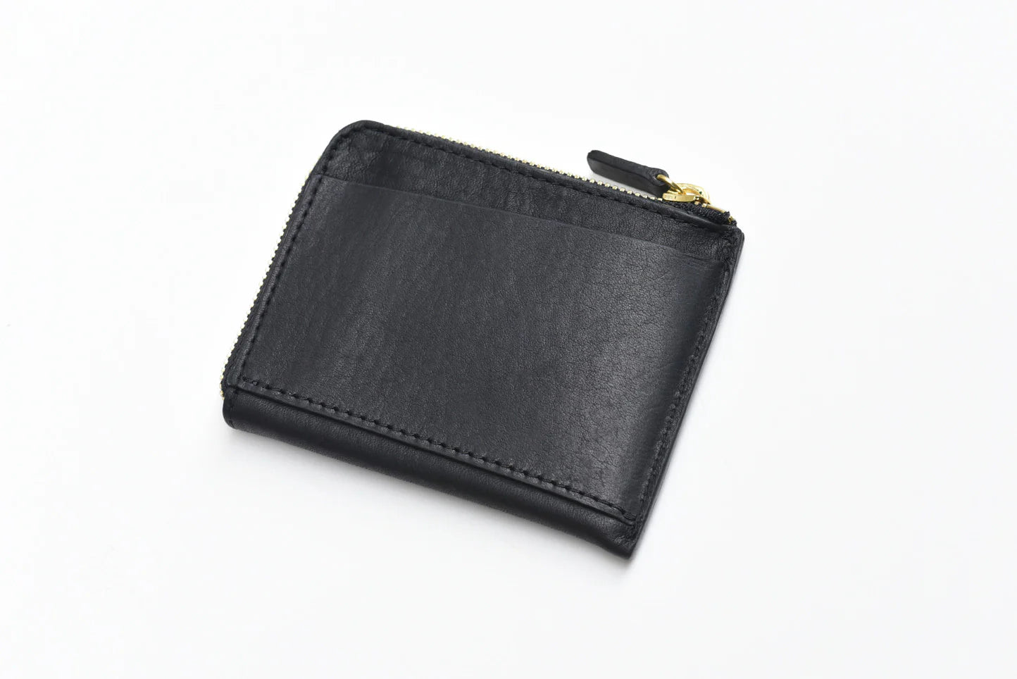 Small stamped logo at front, one exterior card slot