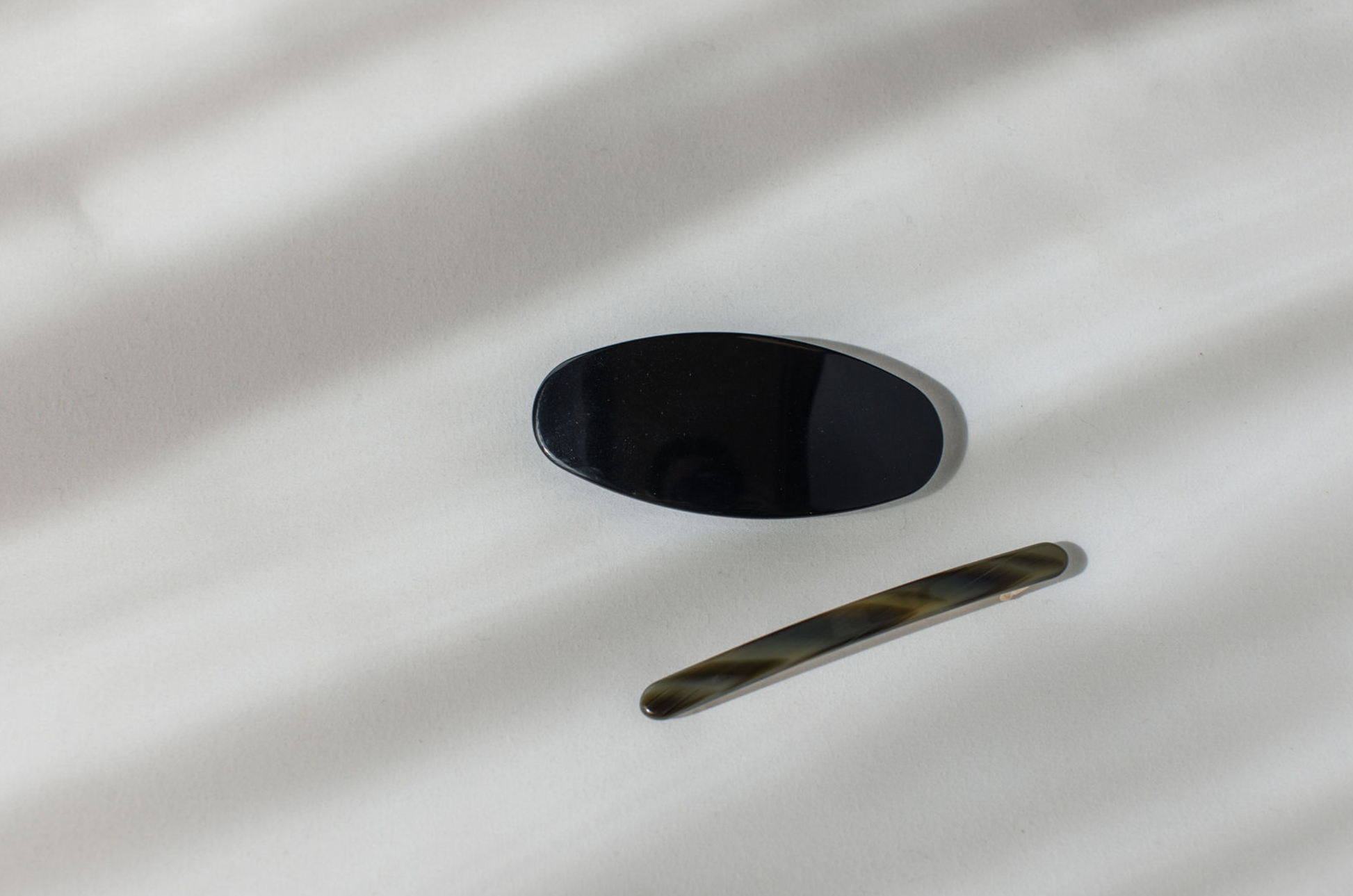 An oversized yet understated barrette, handcrafted from fine Italian acetate. Securely holds medium-to-large volumes of hair.