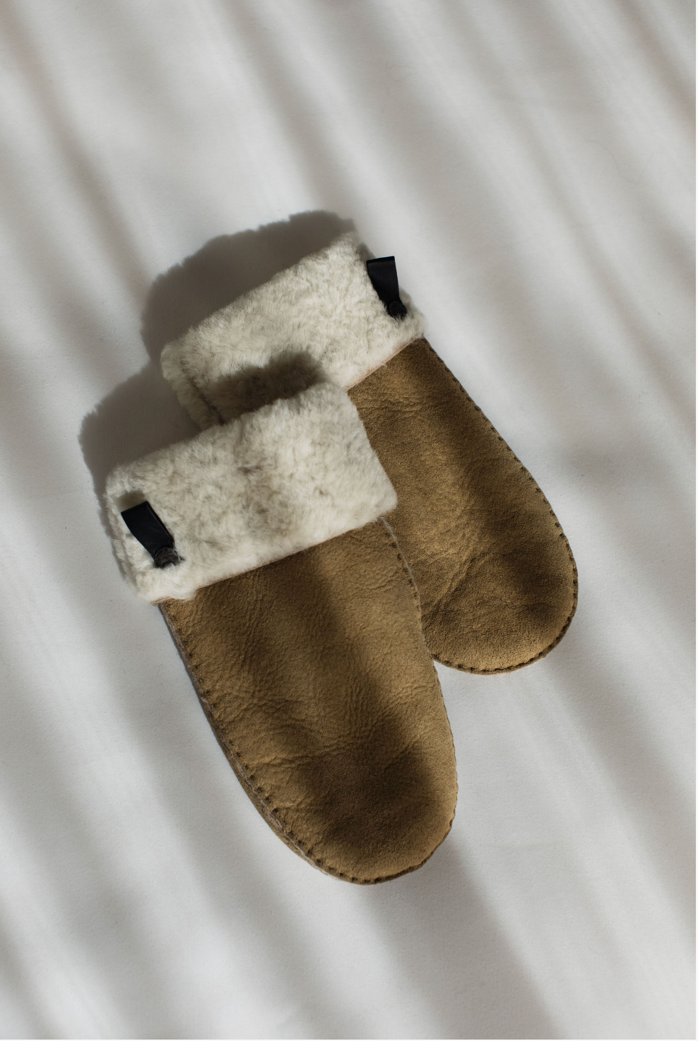 Beautiful mittens made of supple suede with a lining of sheepskin. Sheepskin is the perfect material to keep your hands warm during the cold winter days! In addition to keeping your hands wonderfully warm, sheepskin also ventilates. So your hands stay nice and warm without sweating. You can fold the edge of the mittens into a fur trim.