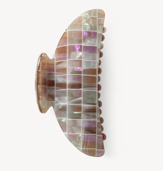Midi Heirloom Claw in Brown Shell Checker - Hair Clip
