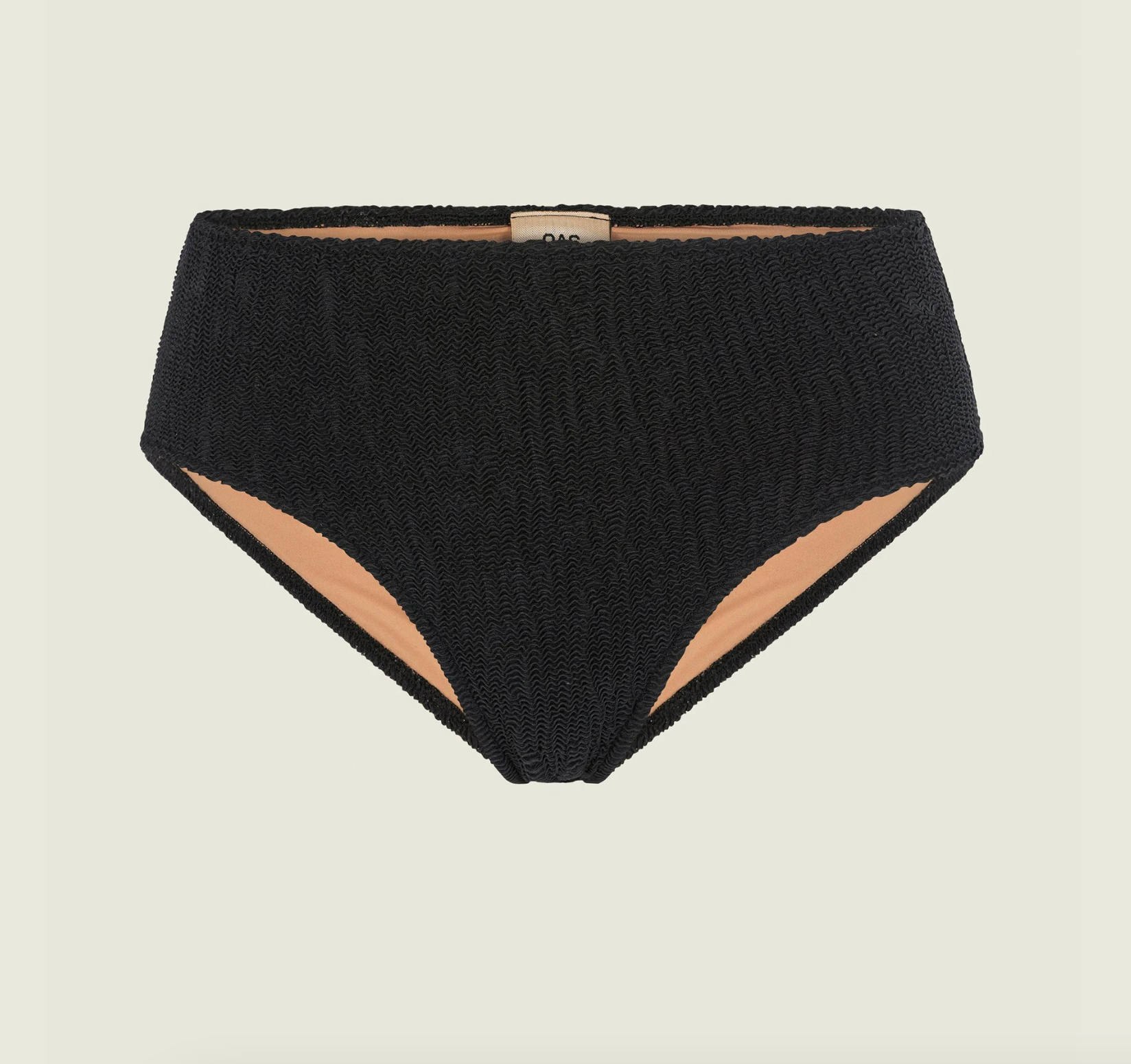 The Nero Riva Bikini Bottom is shaped to a high-rise fit with a ruched back and elevated leg line. Made from nylon in an enduring black hue, featuring a structured surface emblematic of its seersucker weave. Fully lined.