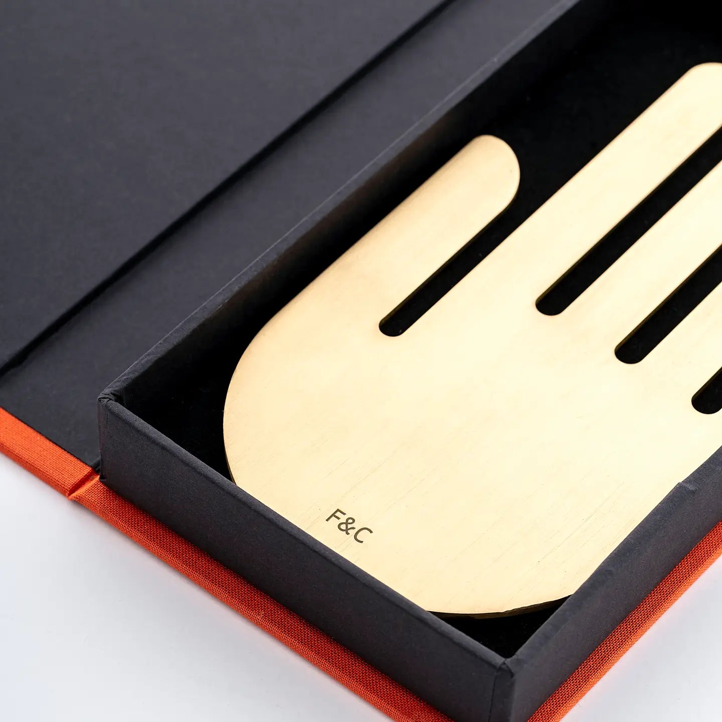 Made from brass, this paperweight hand has a beautiful polished finish resulting in a wonderfully soft and smooth surface. Can be used as a paperweight or a desk accessory.