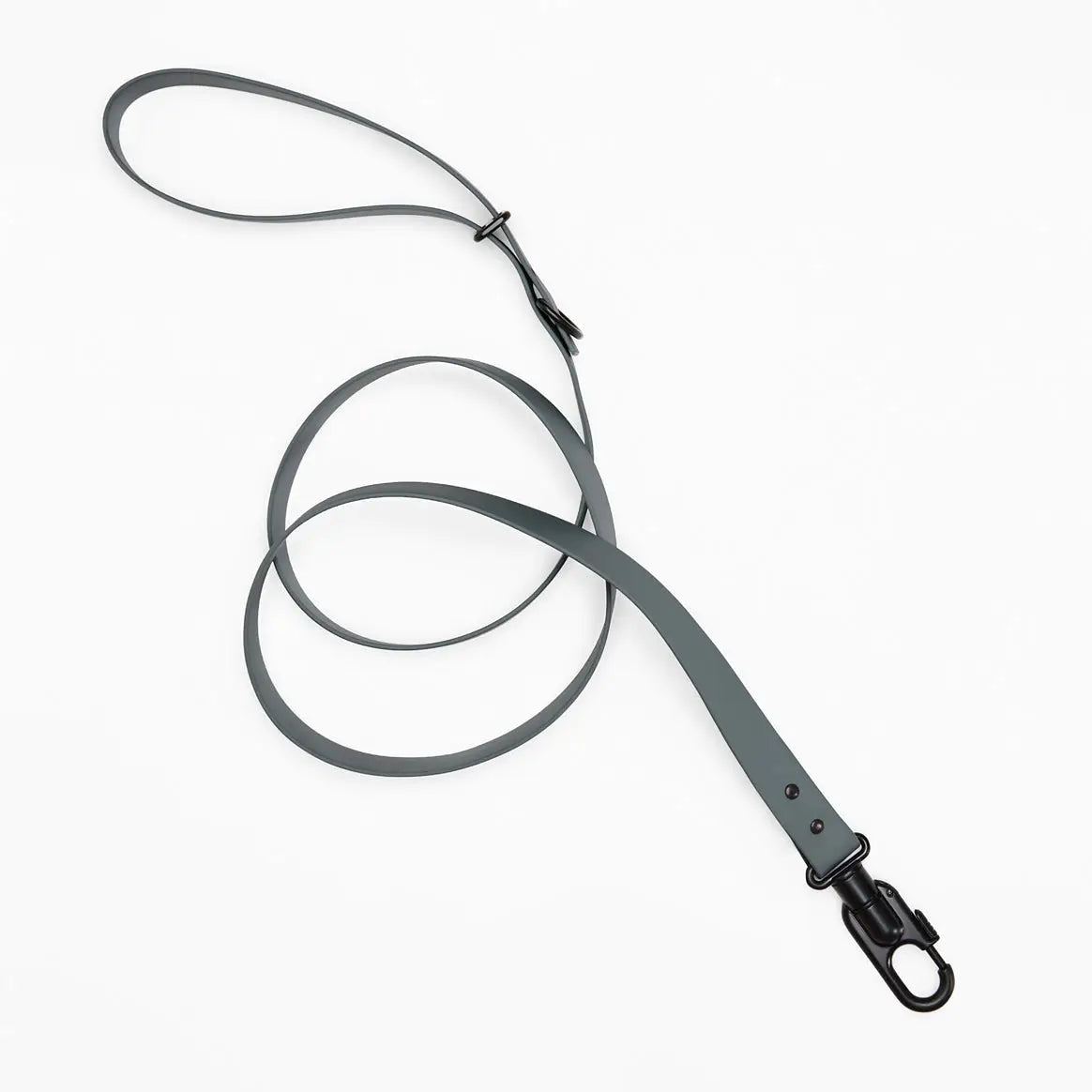Handmade in the USA and available in a range of active, custom colors, our Signature Leash is made to withstand both the elements and your dog with easy-to-clean, waterproof, and durable materials. Details - The patent-pending aluminum security clip is designed to avoid accidental openings - The wrist strap adjuster allows for hands-free walking. - Waste Bag Holder sold separately. - Coated webbing - Matte black aluminum hardware - Remove dirt and liquid using a clean cloth to prevent damage - Waterproof and easy-to-clean - Durable (can withstand up to 300lbs of pull force) but lightweight Sizing: - XS / S - 5/8" x 48" - M - 1" x 50" - L/XL - 1" x 60"