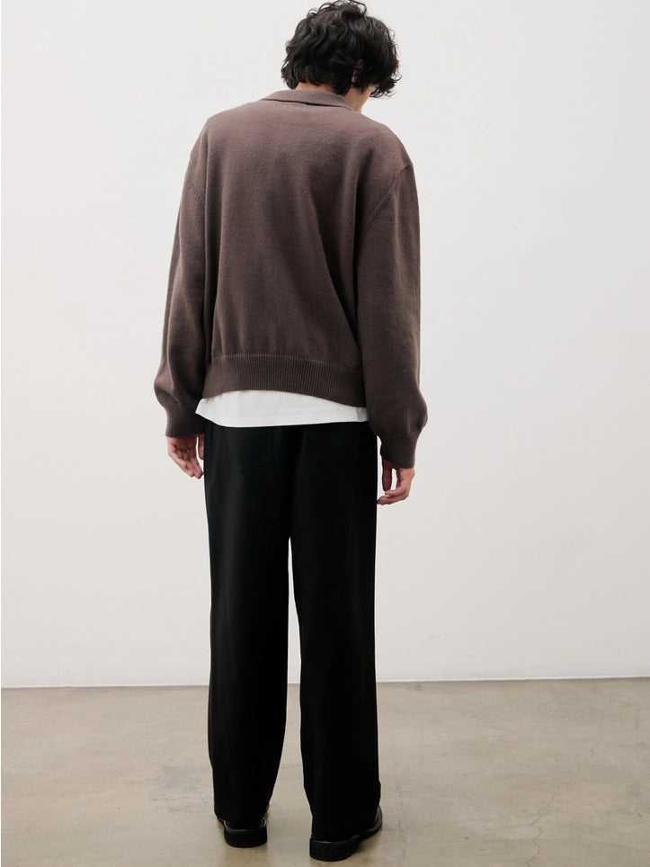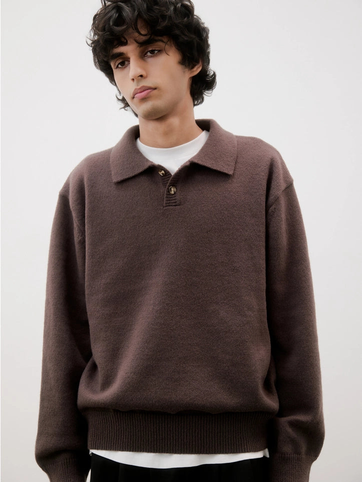 The Kurt Sweater is a relaxed-fit pullover polo crafted from a brushed midweight knit for soft comfort and warmth. It features a classic collared neckline with a partial front button closure and long sleeves, making it perfect for versatile layering.